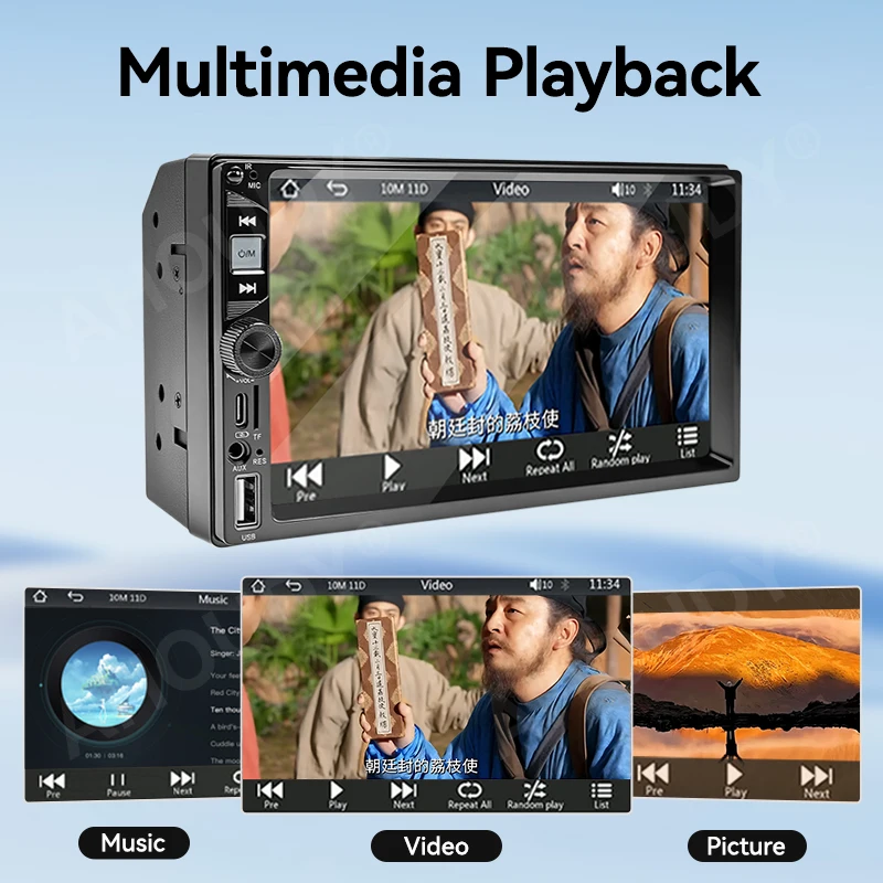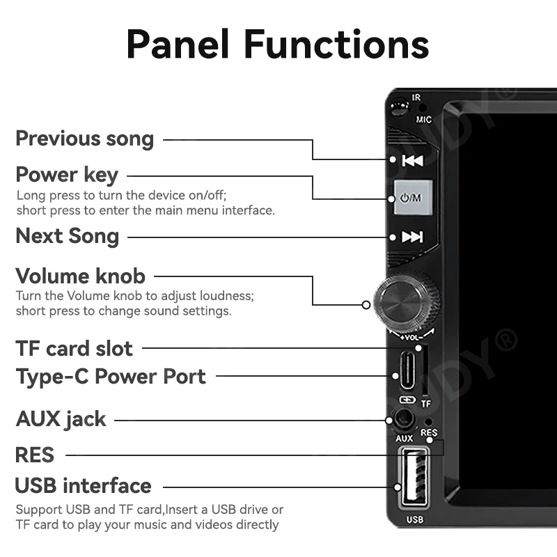 Versatile Playback:Supports USB drives (x2), 64GB TF cards & AUX input